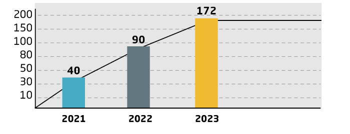 Growth in the number of the company employees since the first fiscal year 2020 until 30/6/2023